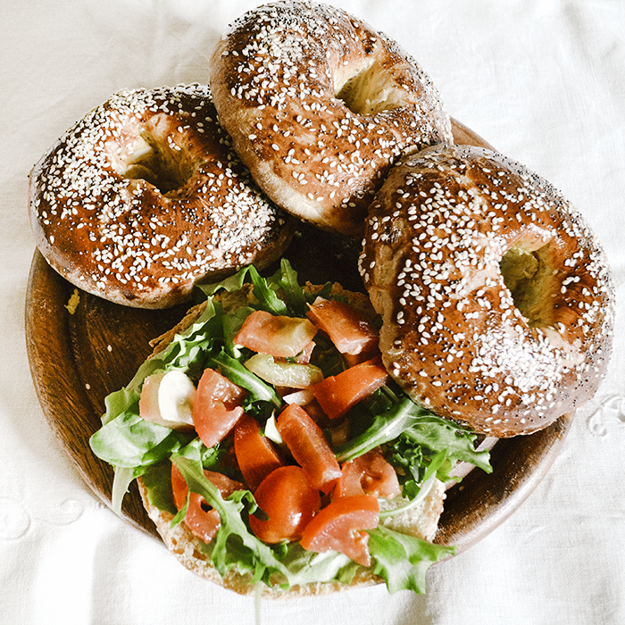 Oggi vi porto alla scoperta di un pane particolarissimo molto usato all’estero buono da mangiare così com’ è oppure farcito. La prima apparizione dei bagel risale agli inizi del 1600 a Cracovia, dove si i bajgiel venivano dati in omaggio alle donne dopo il parto parto. La forma ad anello si dice volesse simboleggiare infatti il ciclo della vita e rappresentava un augurio di buona sorte. È un pane che si utilizza in tutti i paesi dove è esistita una comunità ebraica. Di fattura molto semplice e diversa ( la ciambella dopo la lievitazione viene prima bollita e poi infornata), sono stati portati negli USA dagli immigrati polacchi e sono sempre presenti sui food truck per le strade di New York. Ingredienti: